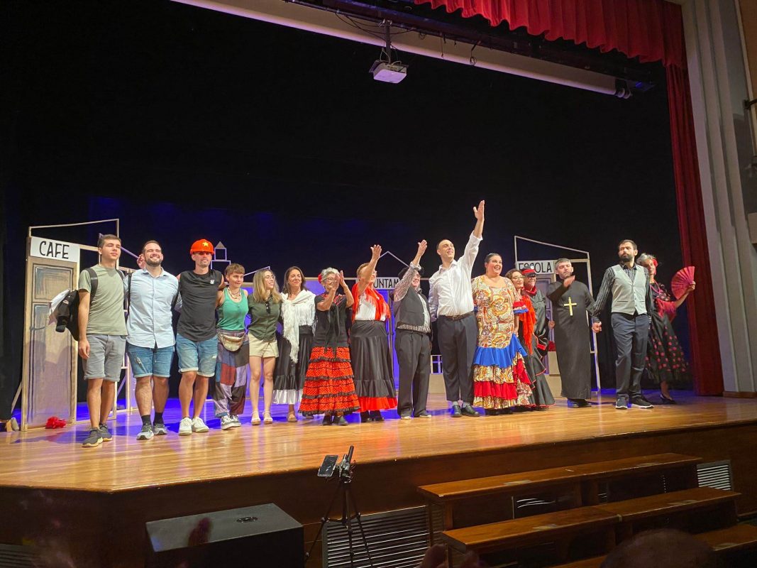 Como primera actividad propia decidimos preparar una obra basada en la película de Luis García Berlanga, «Bienvenido Mr Marshall», haciendo así nuestro pequeño homenaje a su director. La obra es muy especial para nosotros porque tiene un libreto adaptado por nosotros mismos, con la ayuda de Ruth Atienza. Es una versión muy libre, que en sus dos primeras representaciones ha sorprendido gratamente al público, que se ha pasado riendo y aplaudiendo las casi 2 horas de duración, y aún se ha quedado con ganas de más.